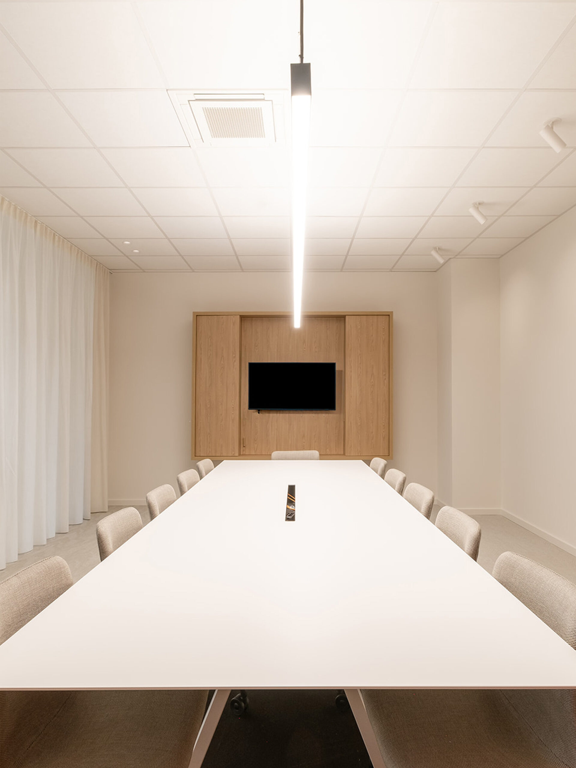 Het resultaat? Een ruime, multifunctionele showroom die niet alleen dienstdoet als presentatieplek, maar ook als opleidingsruimte. Daarnaast ontwierpen we drie vergaderruimtes, elk met een eigen kleur en unieke sfeer.